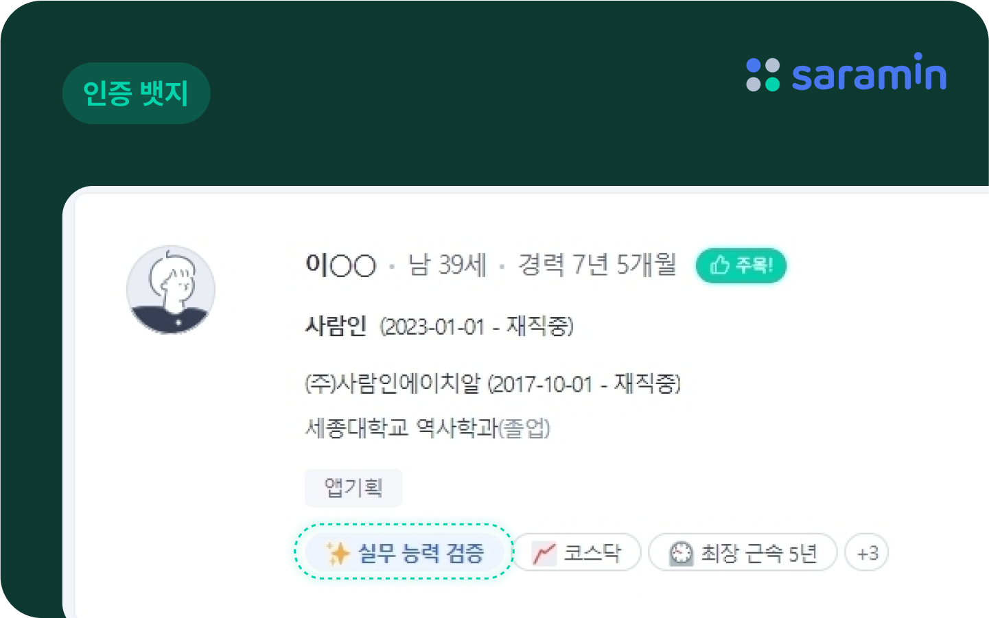 ‘사람인’과 연계하여 여러분의 커리어를 돕습니다.