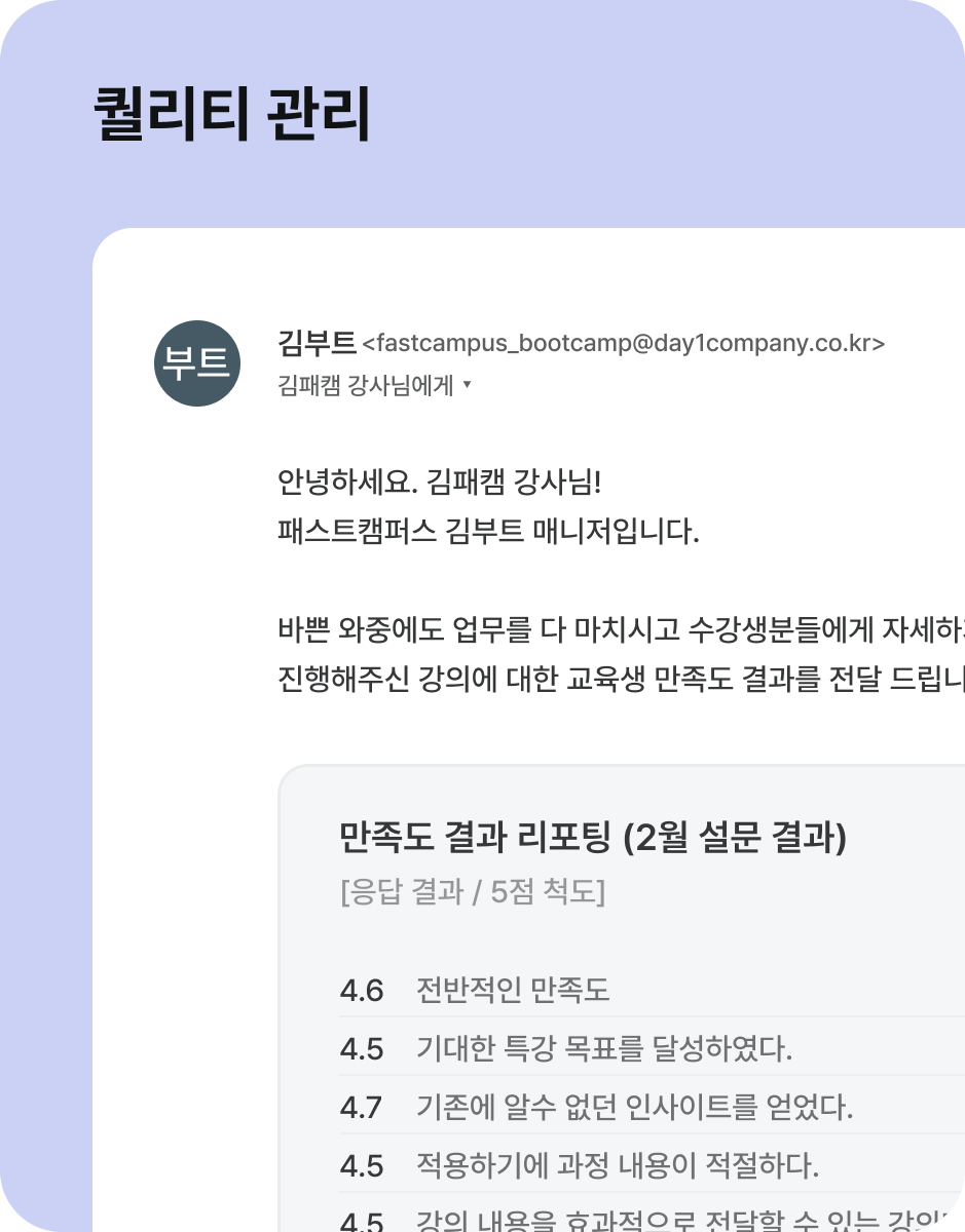 강사진/멘토진과의 긴밀한 소통을 통해 최상의 강의