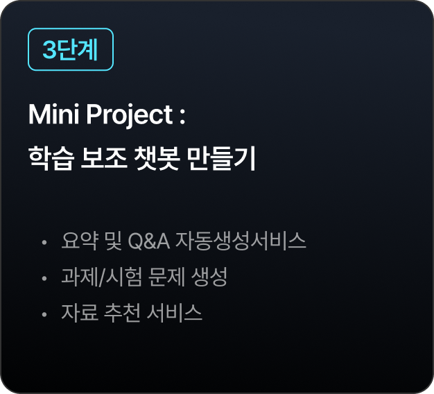 학습 단계별로 필요한 것들을 모두 제공합니다.