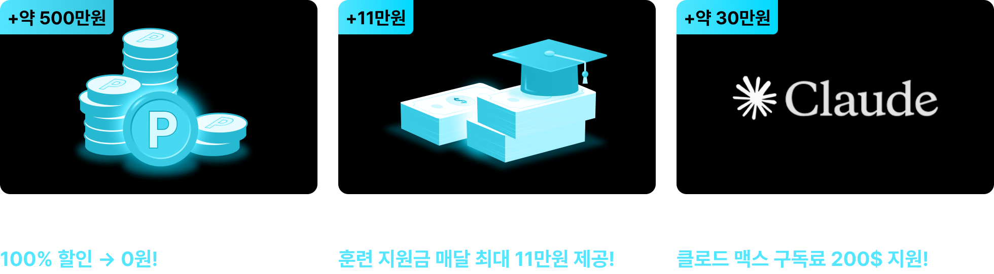 해당 과정은 ‘단기 과정’으로 내일배움카드 잔액이 0원이어도 유효한 카드만 갖고 있다면 K-디지털 트레이닝 사업을 한 번이라도 들으신 수료생, 수강생 분들도 전액 무료로 수강 할 수 있습니다.