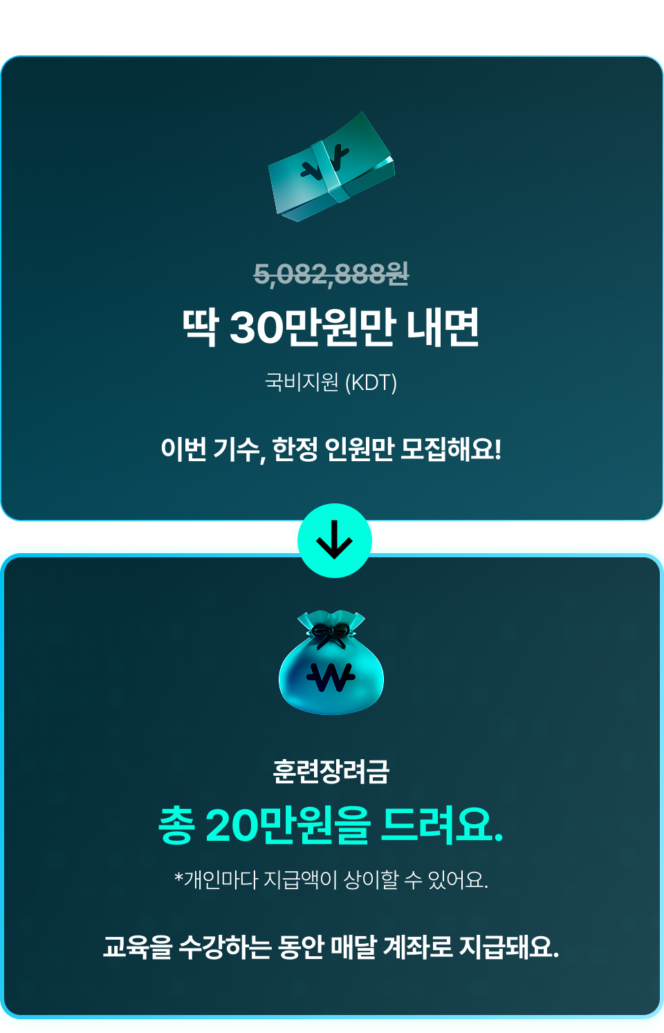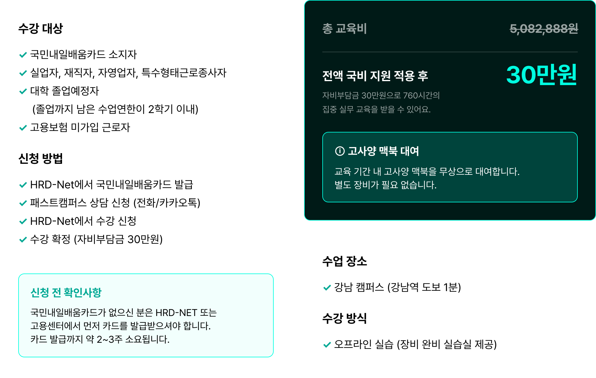 *국비지원은 고용노동부 지원 대상자에 한하며,