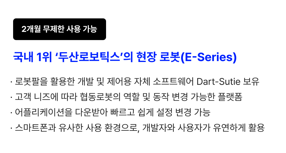 두산로보틱스에서 사용하는 E-Series 로봇으로 로봇의
