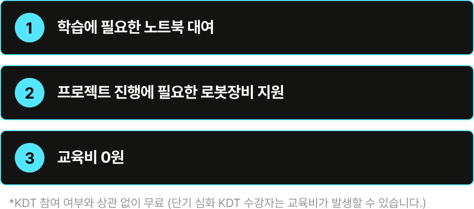 해당 과정은 ‘단기 과정’으로 내일배움카드 잔액이 0원이어도 유효한 카드만 갖고 있다면 K-디지털 트레이닝 사업을 한 번이라도 들으신 수료생, 수강생 분들도 전액 무료로 수강 할 수 있습니다.