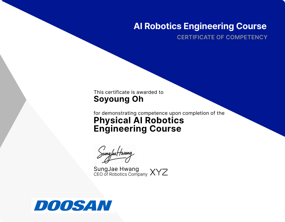 * 과정 수료자에게는 Doosan의 공식 로고가 들어간