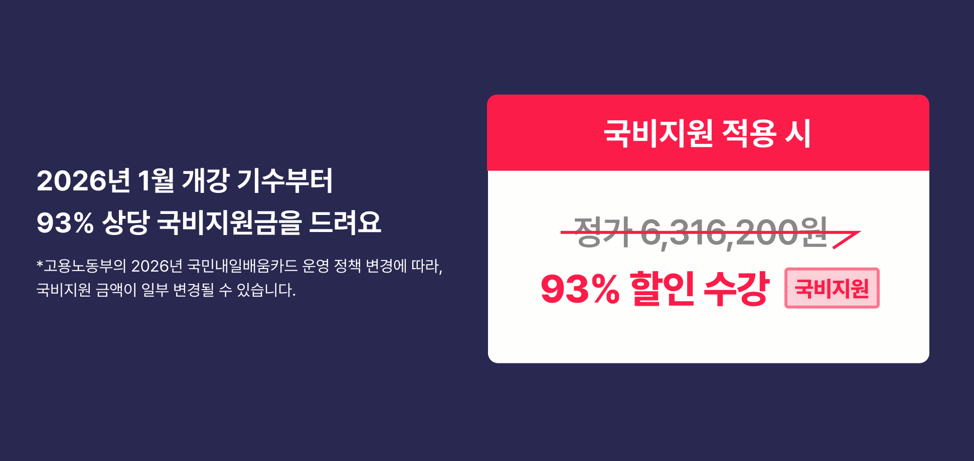 과정 지원 전, 국민내일배움 카드 발급 가능 여부를 확인하시기 바랍니다.