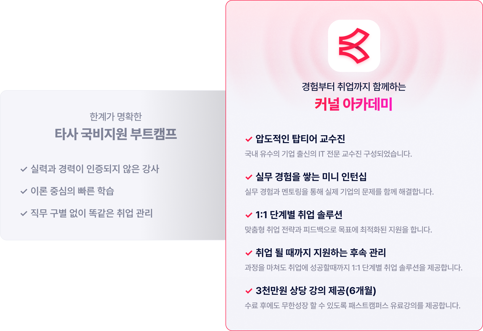 ‘획일화’된 국비지원 부트캠프의 틀을 따르지 않습니다.