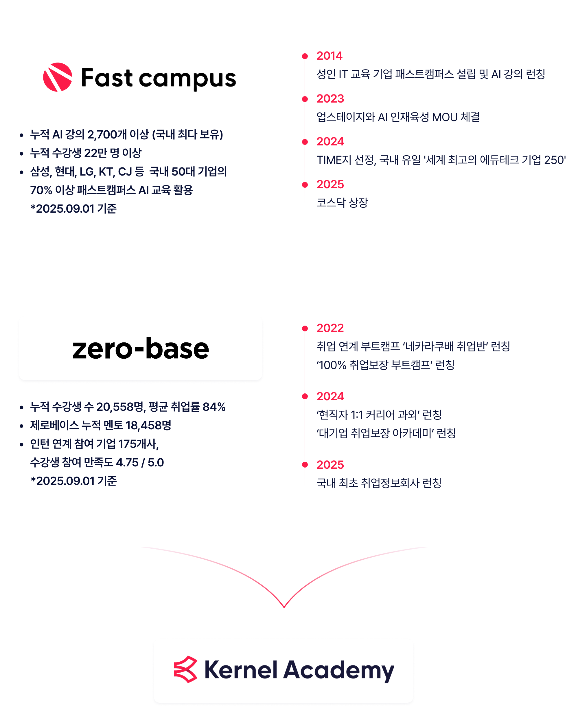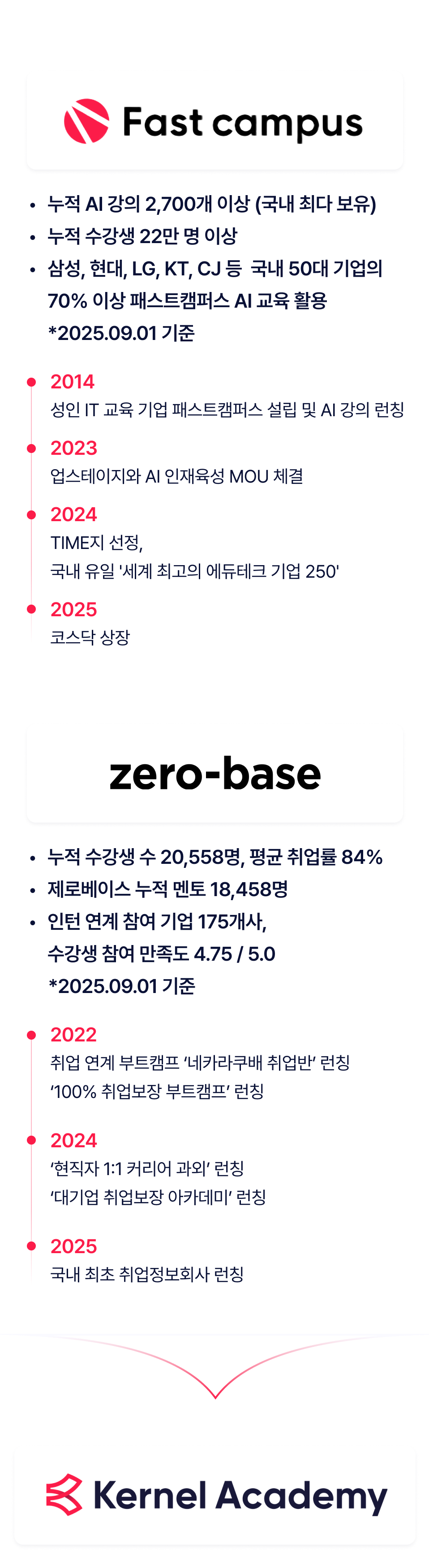 패스트캠퍼스 강의들을 무료 제공하여 커널인들의 취업을 끝까지 돕겠습니다.