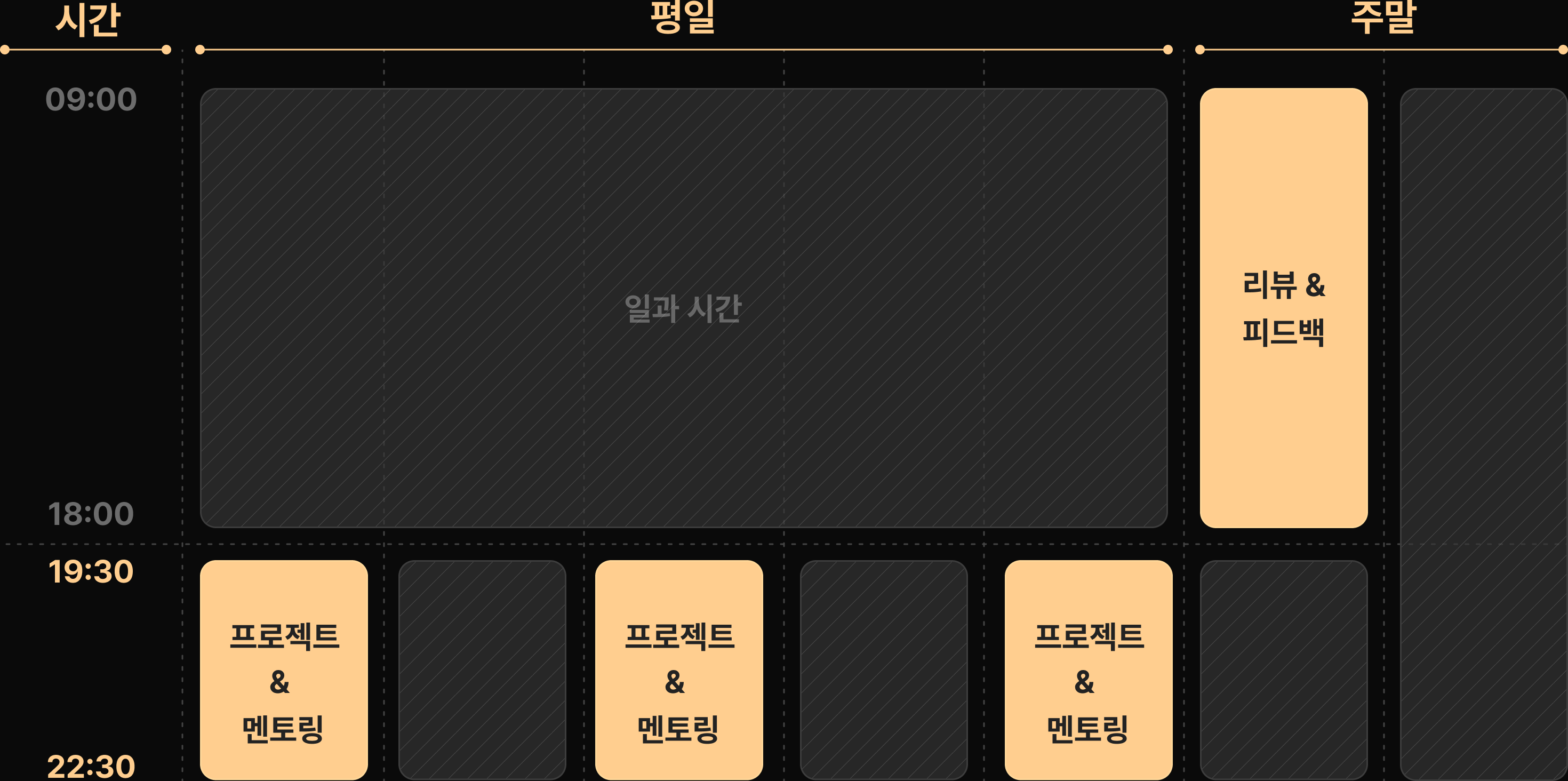 평일에는 팀 별 프로젝트 활동과 도메인 전문가인 현업자 멘토의 멘토링이,