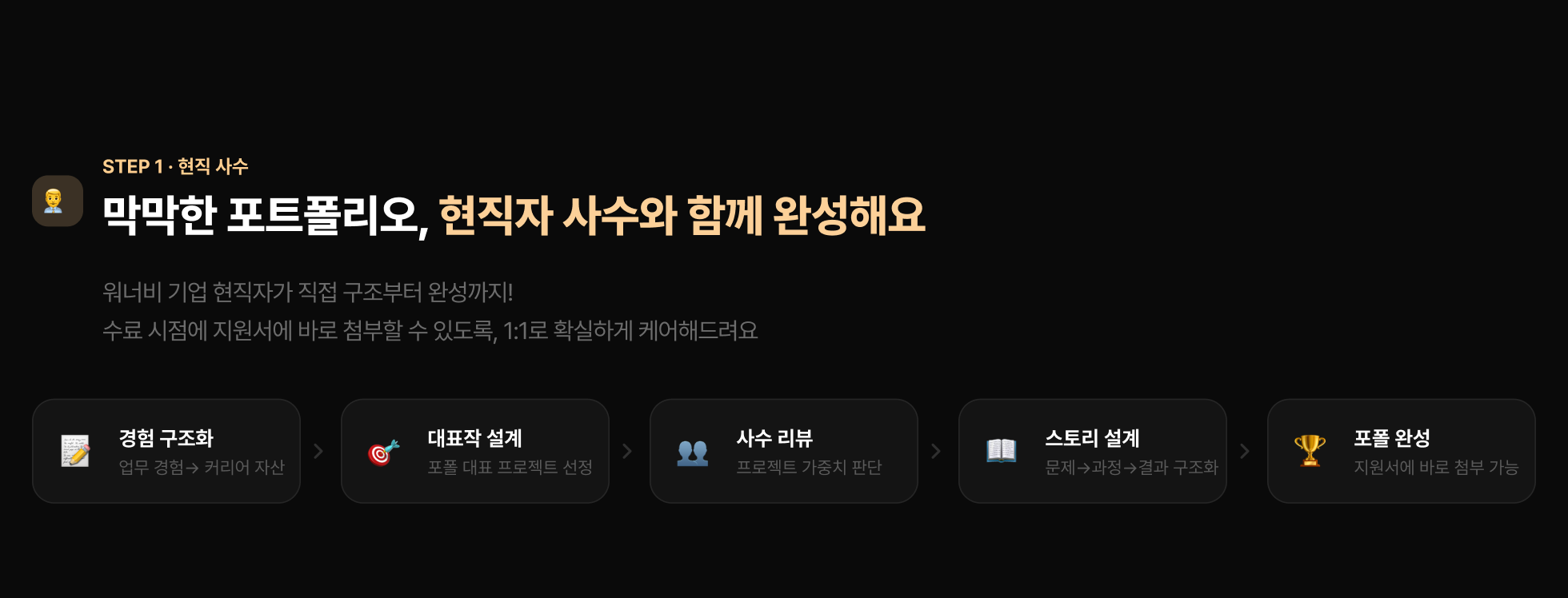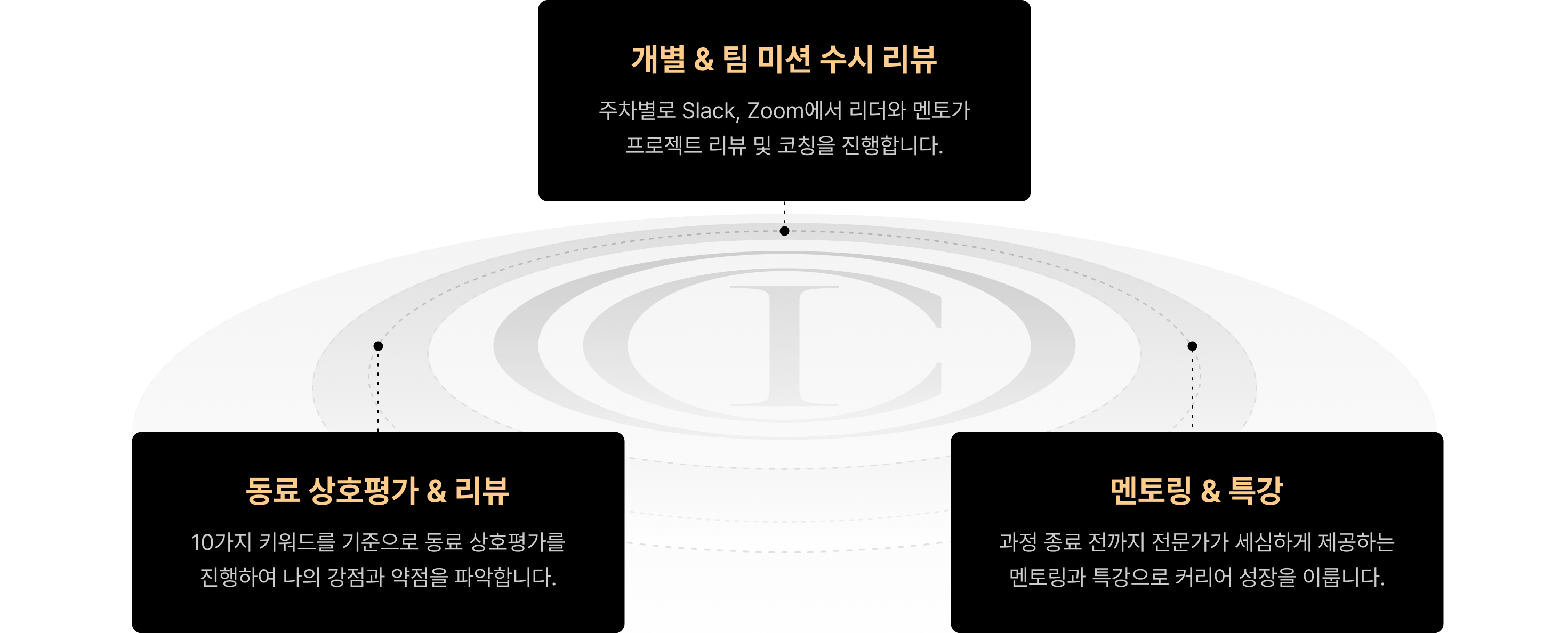 또한 커리어 전문가의 멘토링, 동료간 상호평가를 통해 성장을 위한 방향성을 점검하세요.