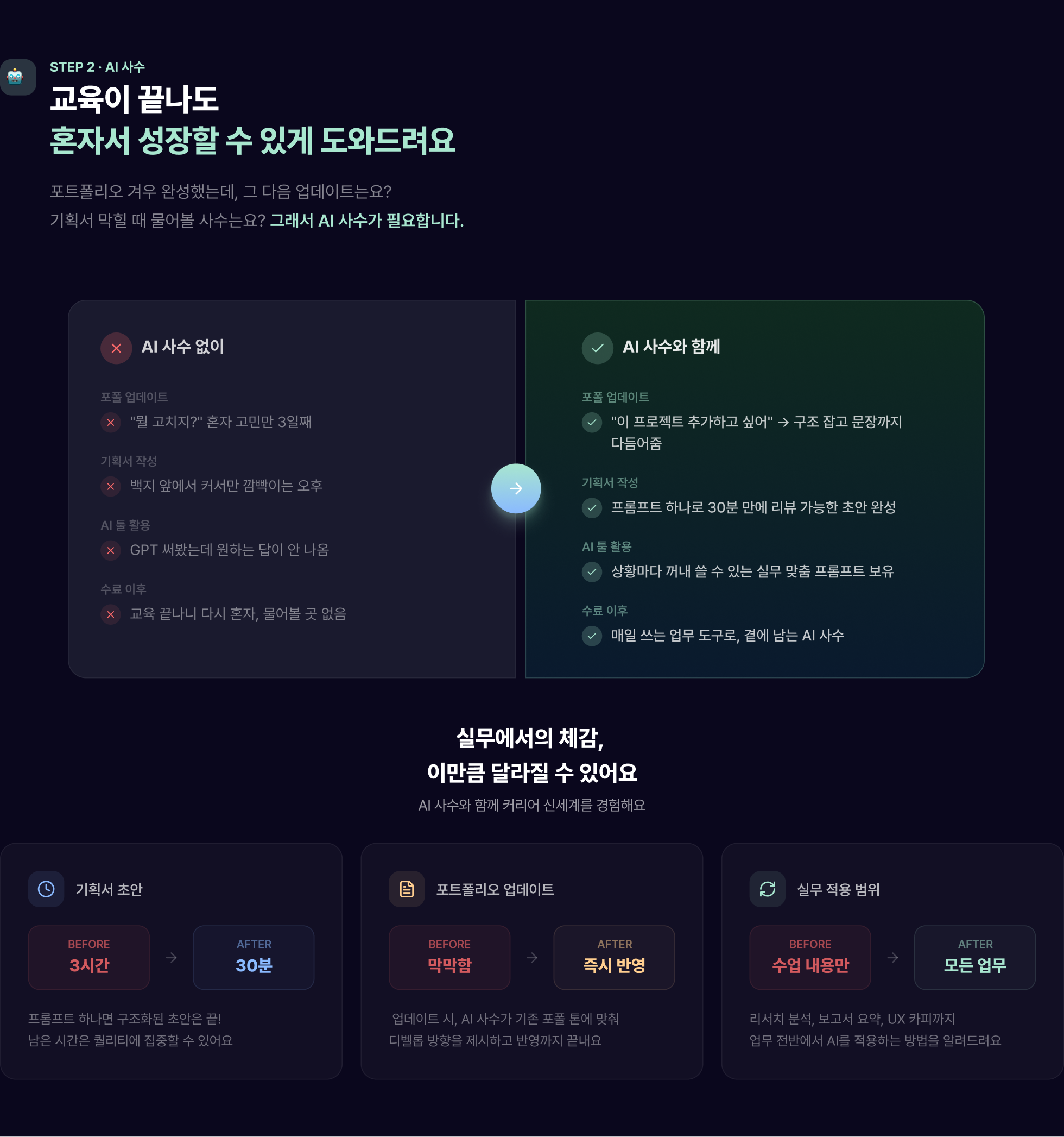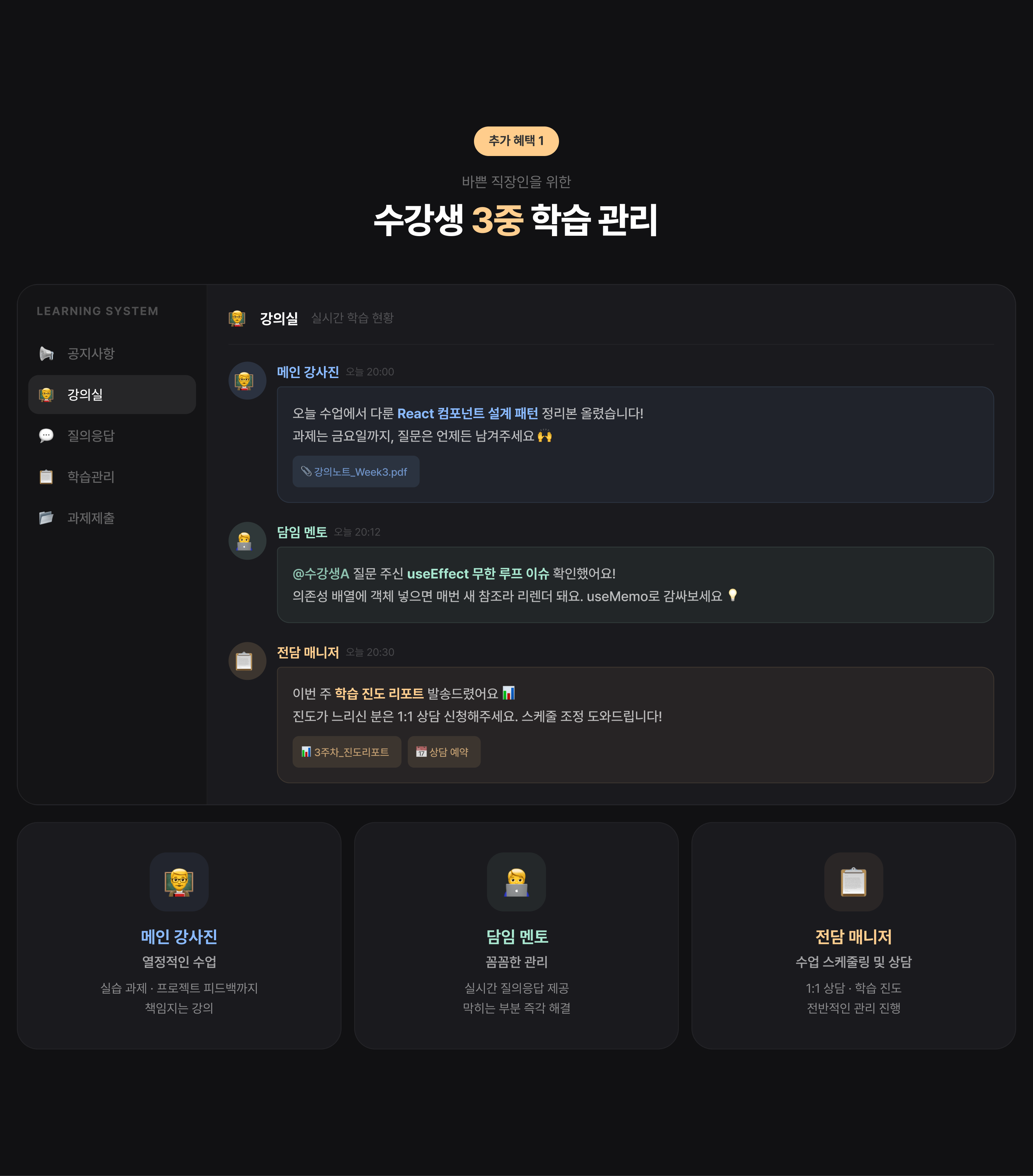 향상된 수강 효과와 다양한 수료 후 지원 시스템까지 경험하세요.