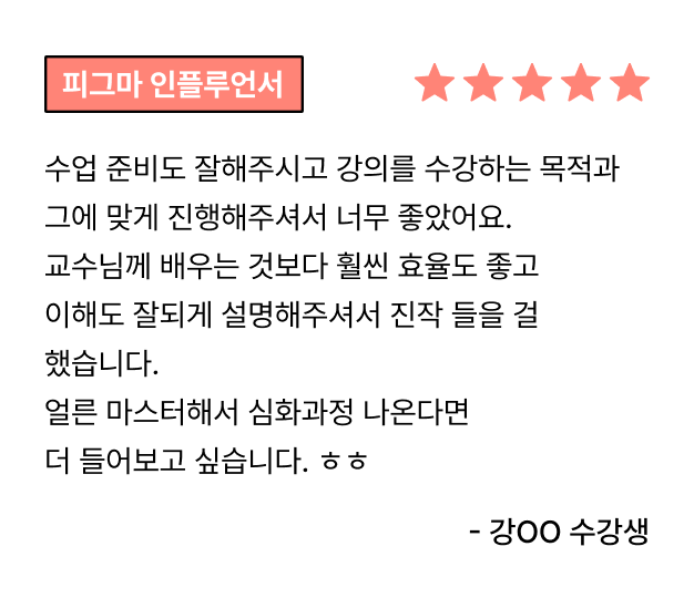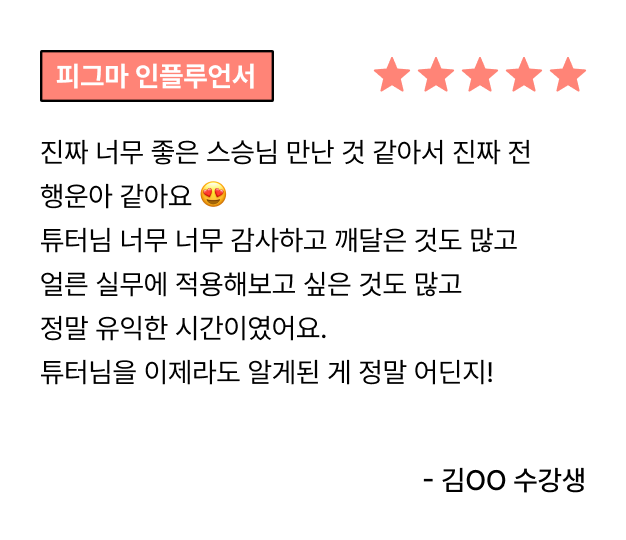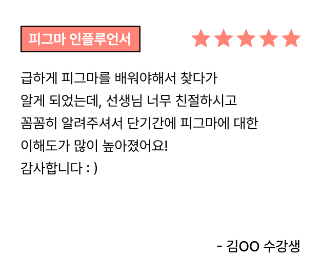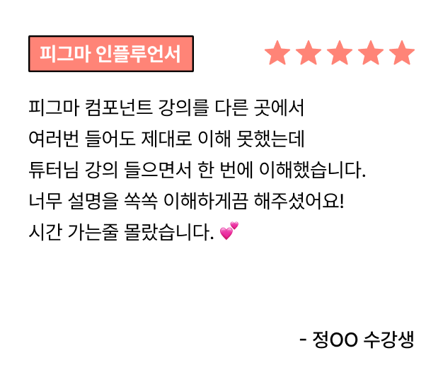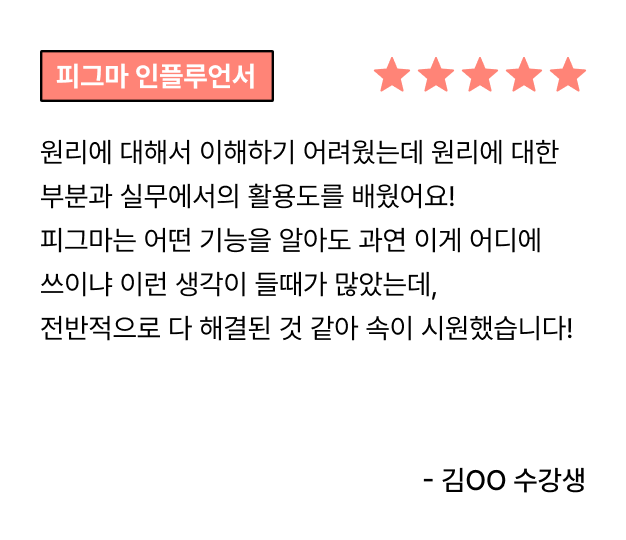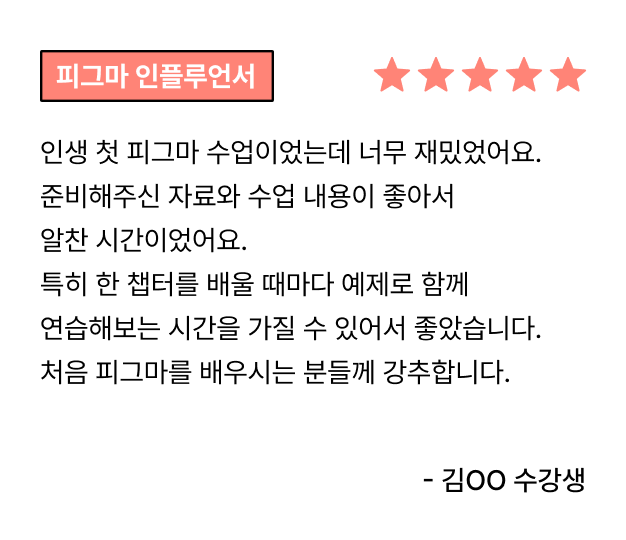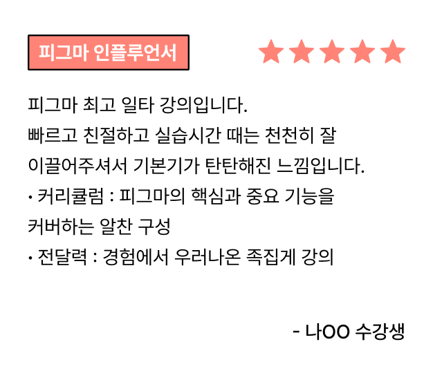 * ๋ณธ ๊ฐ์๋ [๋ชจ๋๋ฅผ ์ํ ํผ๊ทธ๋ง 119๊ฐ ์ค์ต์ผ๋ก ์์ ์ ๋ณต] ๊ฐ์๋ฅผ ํ์ฉํ์ฌ 5์ฃผ๊ฐ ๊ฐ์ฅ ํจ์จ์ ์ผ๋ก ํ์ตํ ์ ์๋๋ก ๋ง๋ ์ปค๋ฆฌํ๋ผ์ ๋๋ค.