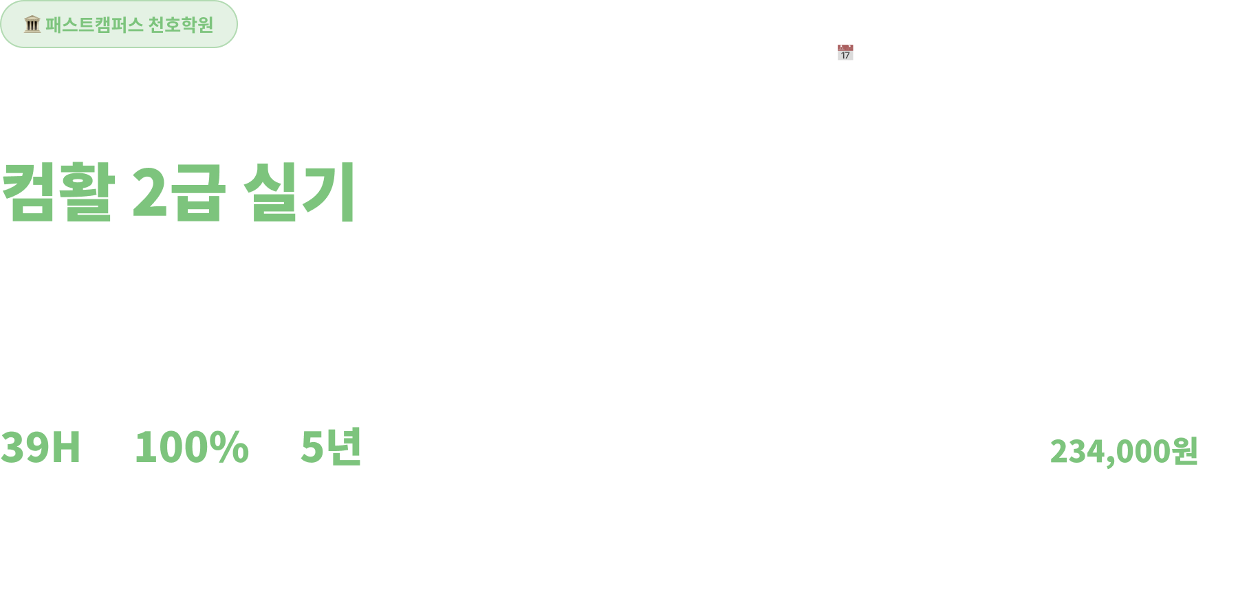 패스트캠퍼스 천호학원에서 100% 오프라인으로 진행됩니다. 정확한 주소 및 오시는 길은 등록 완료 후 별도 안내됩니다.