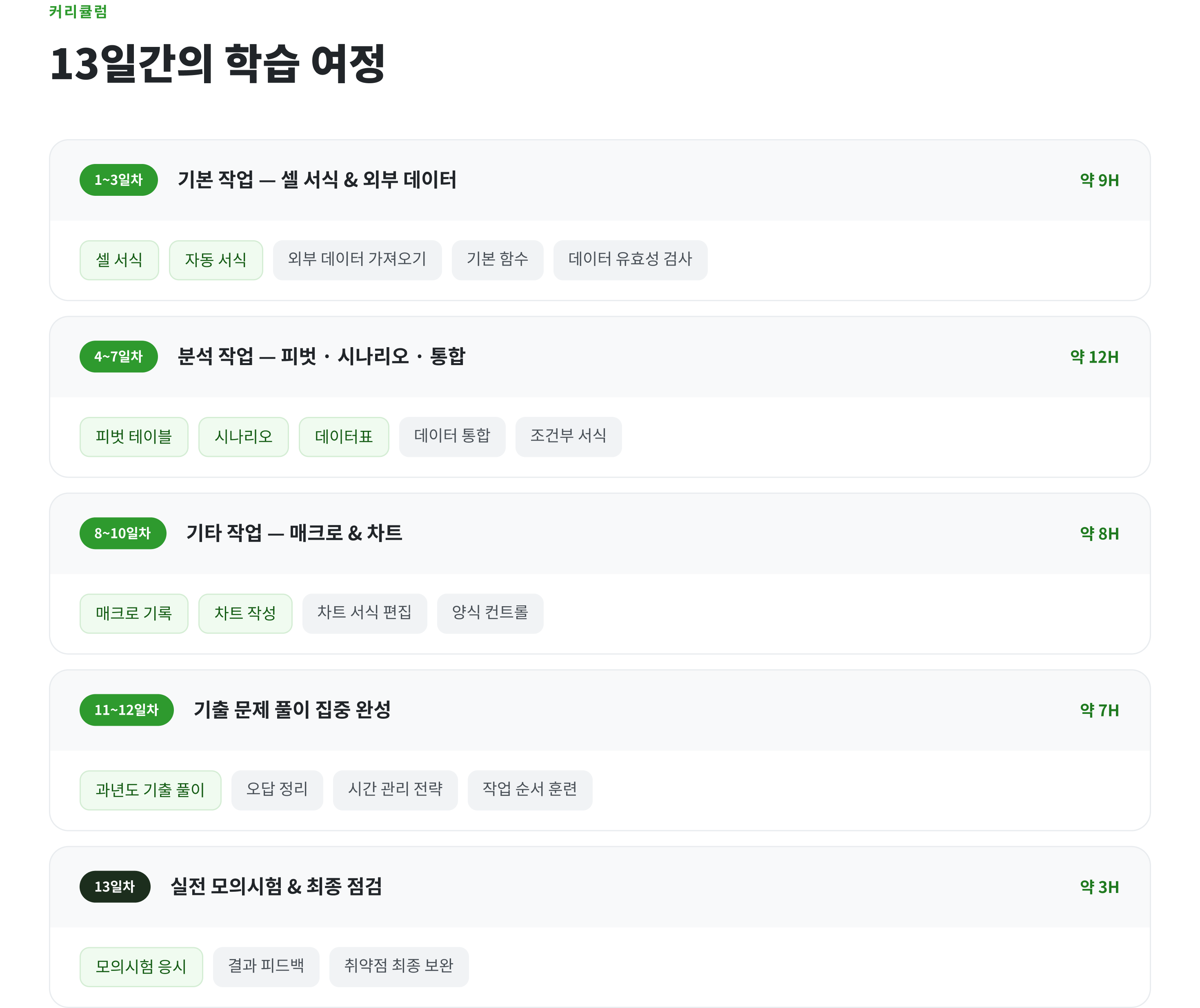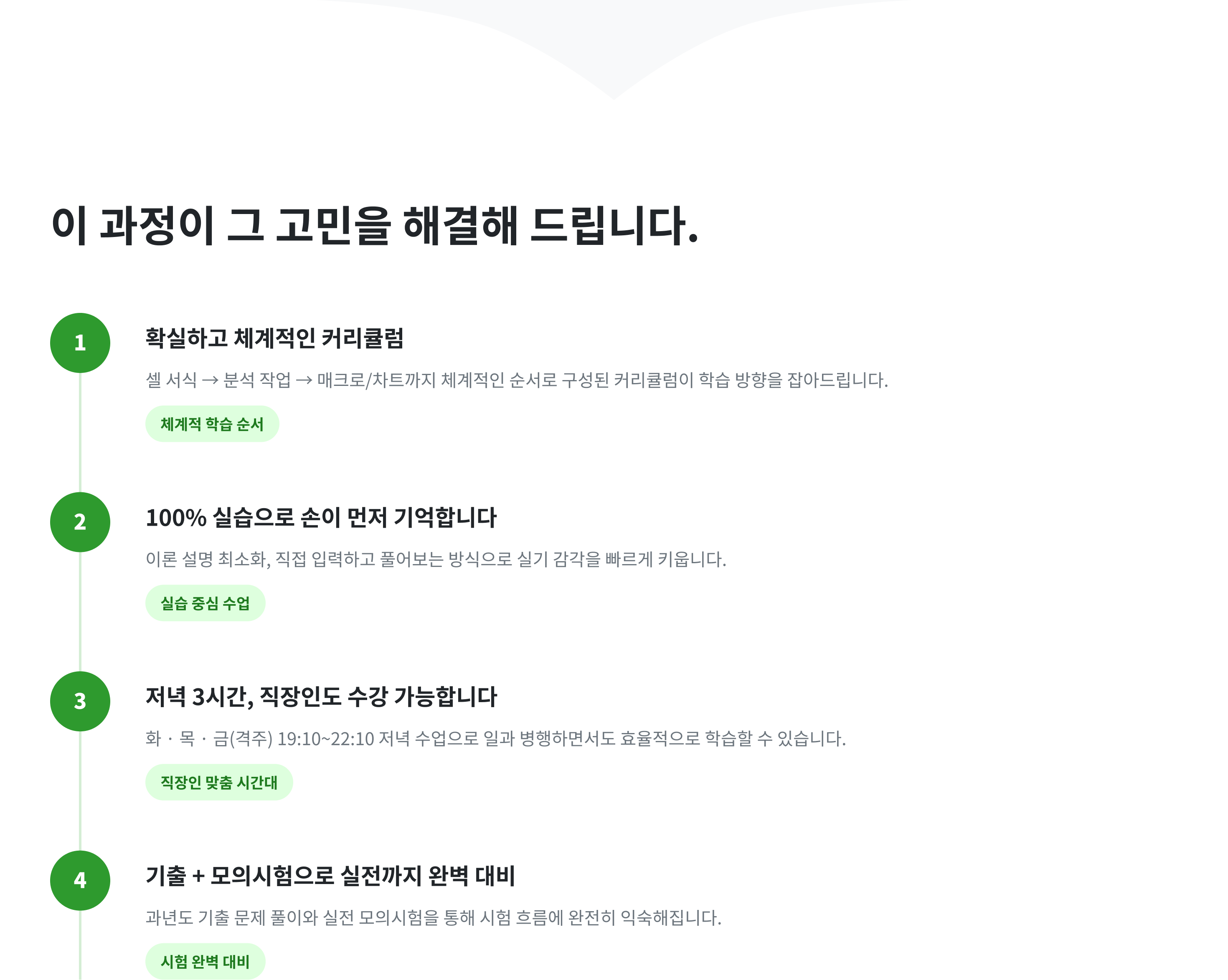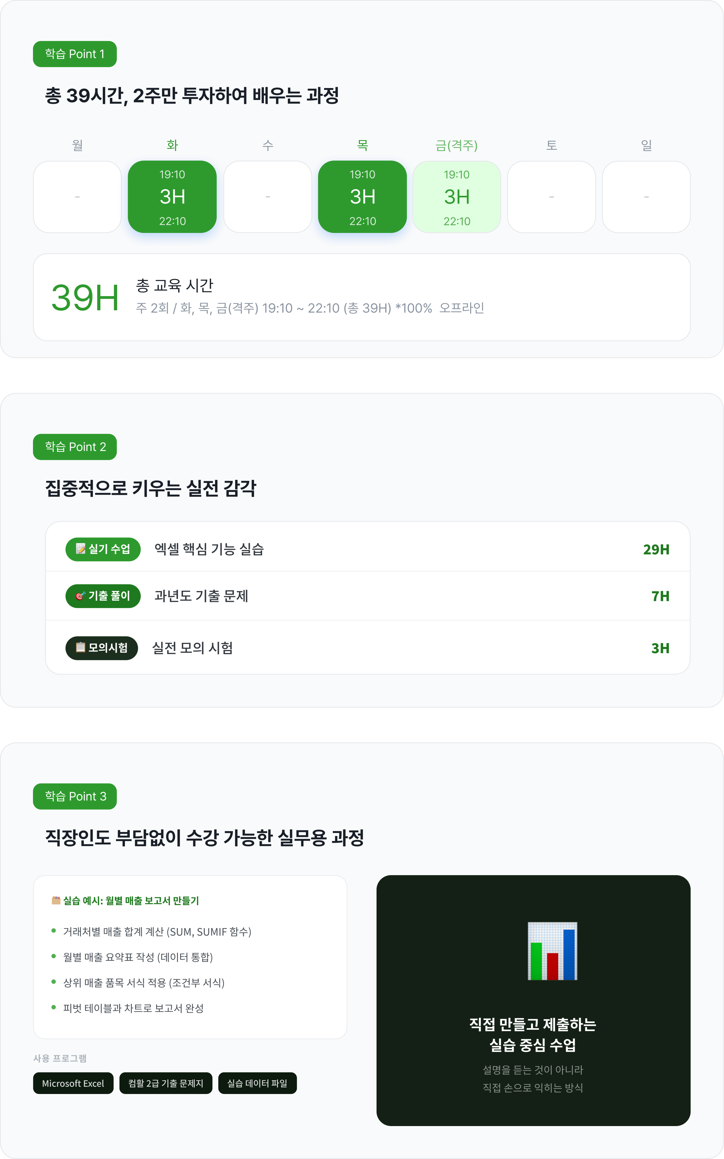이 과정은 실기 중심으로 구성되어 있습니다. 필기 자격증 취득 여부와 관계없이 엑셀 실기 역량 향상을 목표로 하시는 분이라면 수강