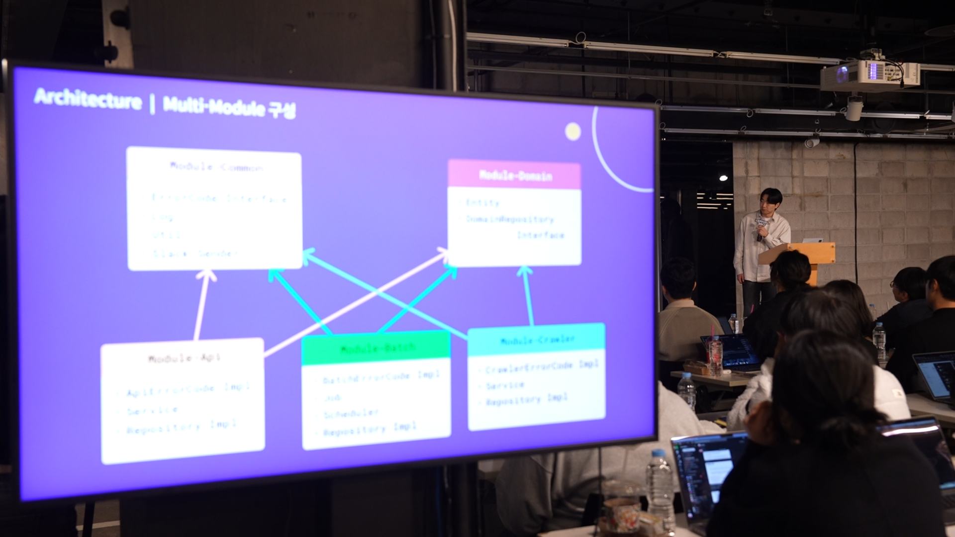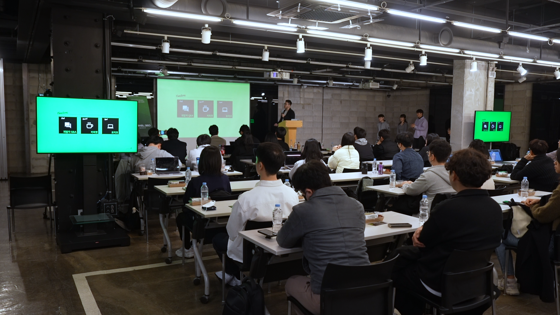 이번 발표회는 Kernel360의 멤버 외에도 많은 인원이 참석했는데요. 패스트캠퍼스 대표, 팀장, 운영진, 그리고 수강생들의 프로젝트에 관심이 많은 외부 기업 관계자들까지 함께했습니다.