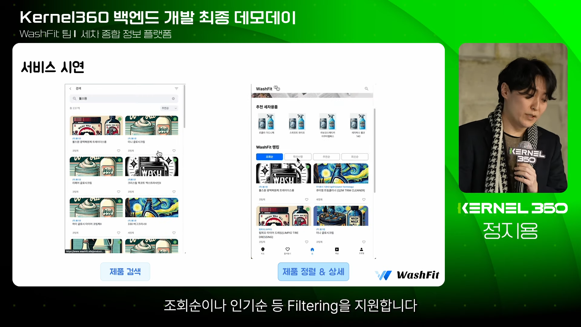네 번째로 세차 화학용품 종합 정보 서비스 'WashFit'팀의 발표가 이어졌습니다.