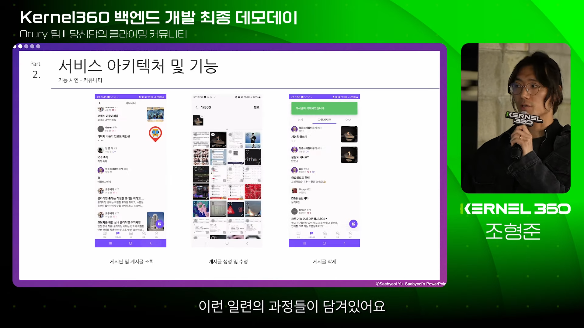 박조은 디렉터는 "발표회 하루 전날에도 밤늦게까지 GitHub알림이 울렸다. 마지막까지 포기하지 않고 함께하느라 고생 많았다"며 "Kernel360에서의 경험이 앞으로 여러분들에게 많은 도움이 됐으면 좋겠다. 더 나은 세상을 위해 계속 기여해달라"라고 전했습니다.