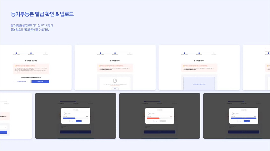 주요 기능은 부동산 등기부등본 업로드와 해석, 그리고 부동산 추가정보 해석 및 부동산 관련 정보 제공이었습니다. 등기부등본을 업로드하면 해석 후에 제출이 되는 기능을 바탕으로 표제부와 갑구, 을구에서 꼭 확인해야 할 사항과 주의점을 설명하도록 했고 해당 부동산의 기본 정보와 실거래 가격을 그래프로 확인할 수 있었습니다. 부동산 소유자의 정보부터 누적 압류 횟수, 근저당, 권리 관계에 대한 정보까지 확인이 가능해 부동산 지식이 부족한 사용자에게 실용적인 프로젝트였답니다.