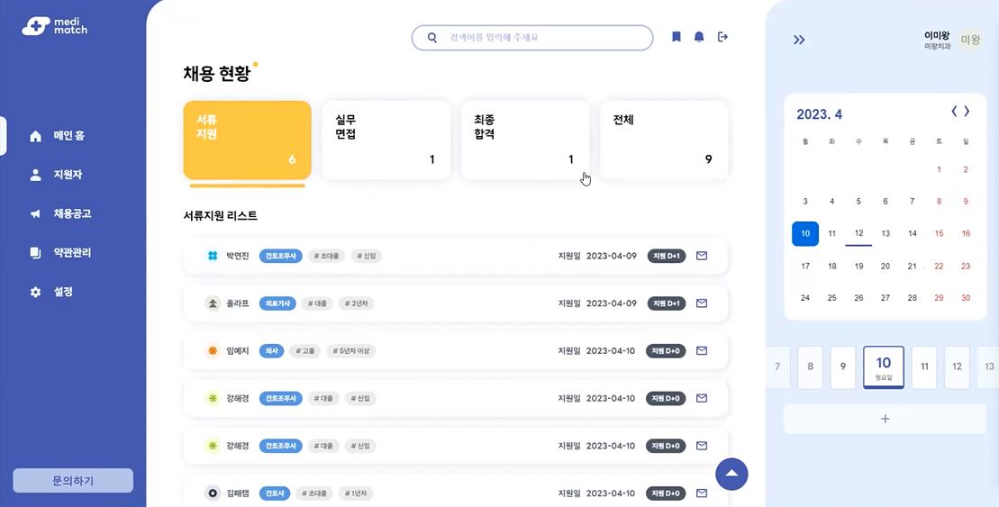 2조 병의원 채용 관리 서비스 메디매치 웹페이지 시연 화면
