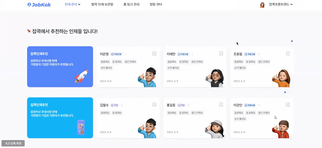 3조 자동화 채용 절차 서비스 ‘잡콕’ 웹페이지 시연 화면