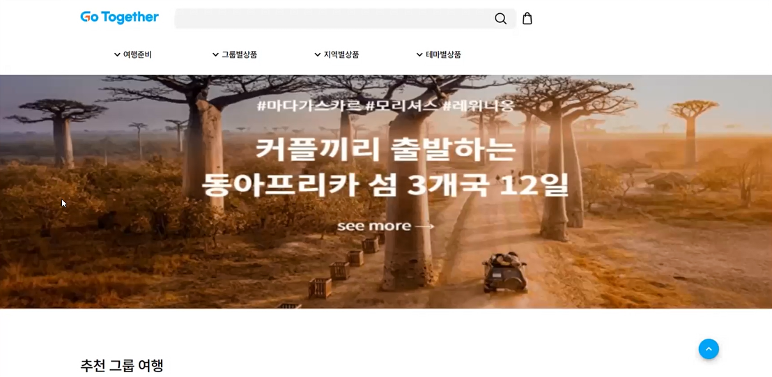 6조 여행 큐레이션 서비스 ‘고 투게더’ 웹페이지 리뉴얼 시연 화면
