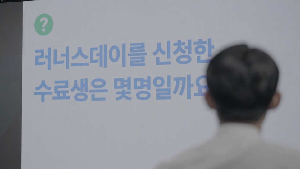 제2회 러너스데이는 패스트캠퍼스 운영진이 준비한 깜짝 퀴즈로 포문을 열었습니다. “러너스데이를 신청한 수료생은 몇 명일까요?”에서부터 “러너스데이 참여 신청이 가장 많았던 과정은 OO이다!”까지, 러너들의 적극적인 참여를 이끌어 낼 재미있는 질문들로 구성된 퀴즈였는데요.