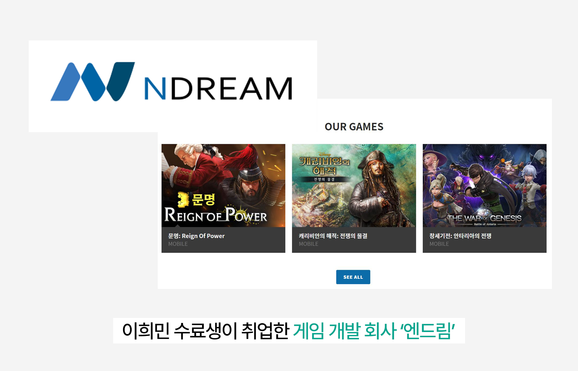 엔드림은 전쟁 시뮬레이션 전문 게임 회사입니다. 모바일 게임과 소프트웨어 개발 사업을 진행하고 있죠. 캐리비안의 해적, 창세기전, 문명 레인 오브 파워 등 다양한 게임을 개발한 곳이에요. 저는 작년 12월 26일에 입사하여, 벌써 4개월이라는 시간을 엔드림과 함께하고 있습니다.