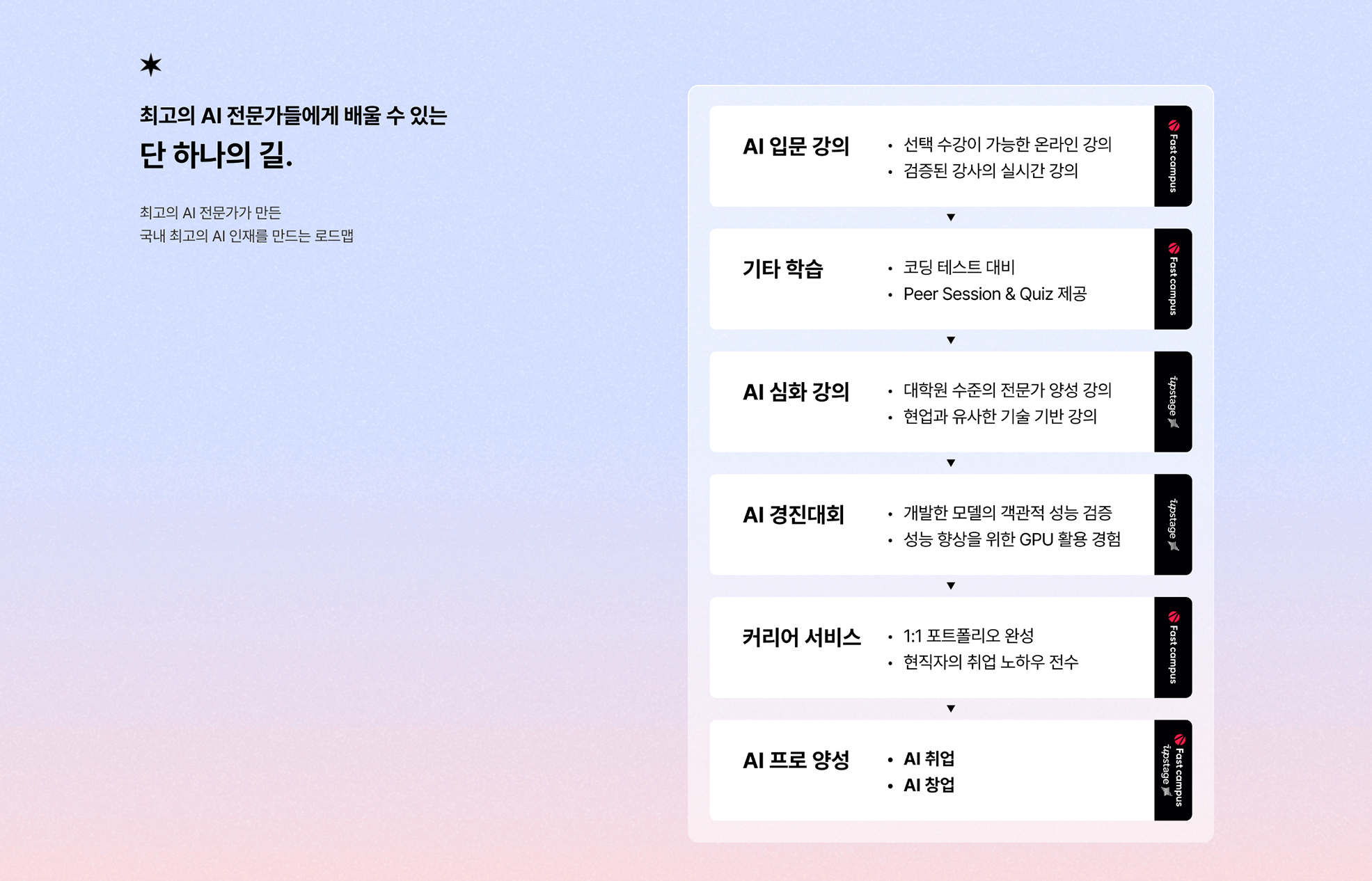 엉성하게 발을 걸치고 있는 것이 아닌, AI 프로를 길러내는 것이 저희의 목표입니다.