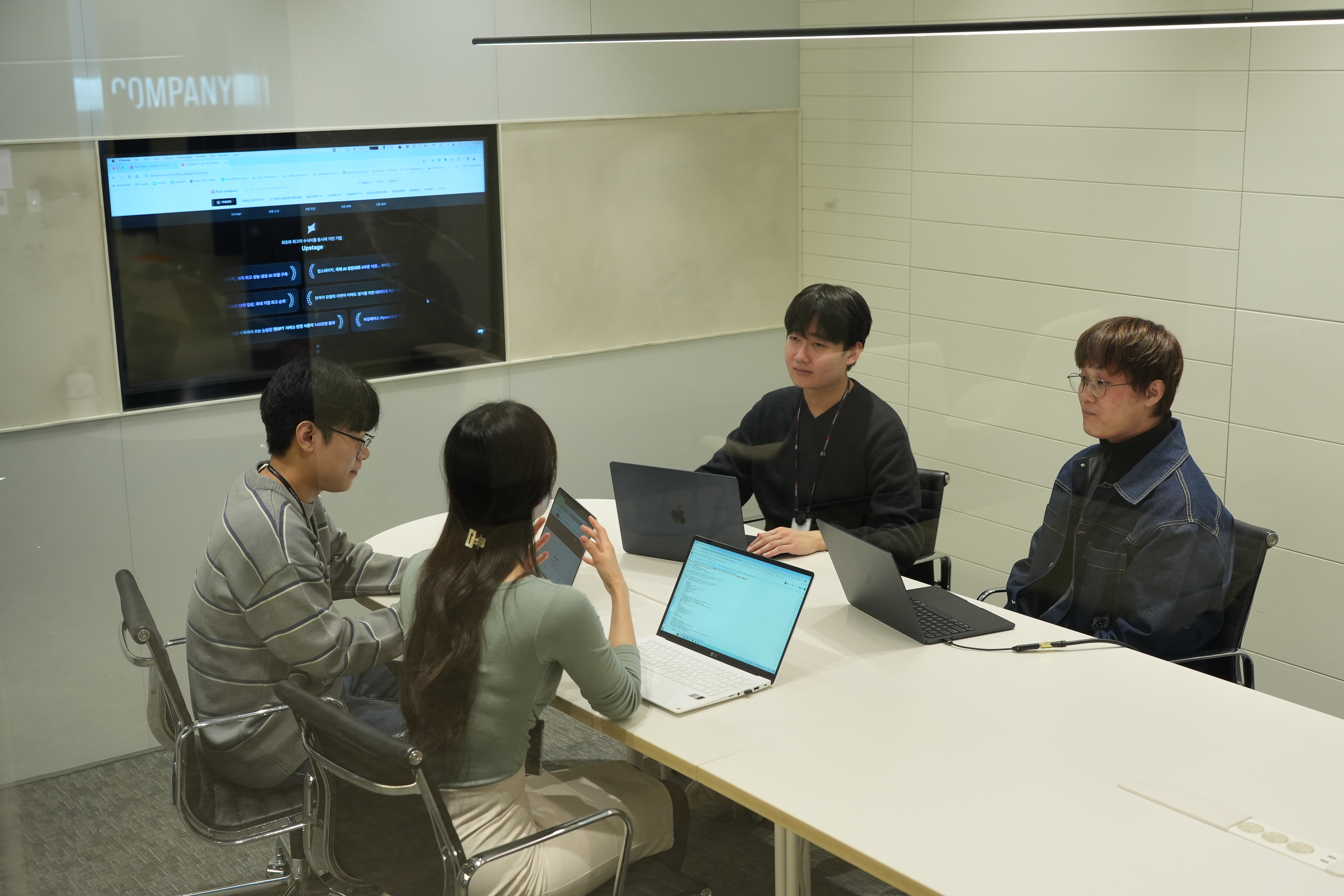 Upstage와 패스트캠퍼스 운영진·강사진이 미팅을 하고 있는 모습