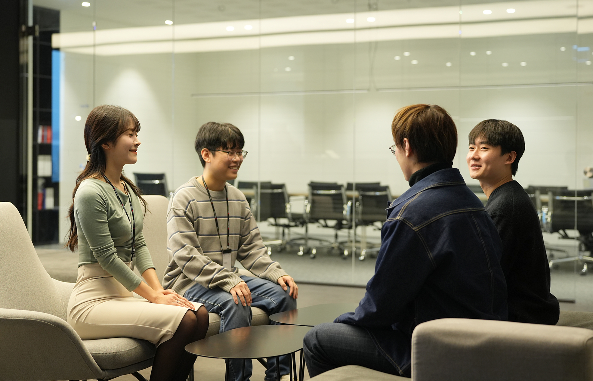 Upstage AI Lab 김용담 강사와 이야기를 나누고 있는 오소영 PM