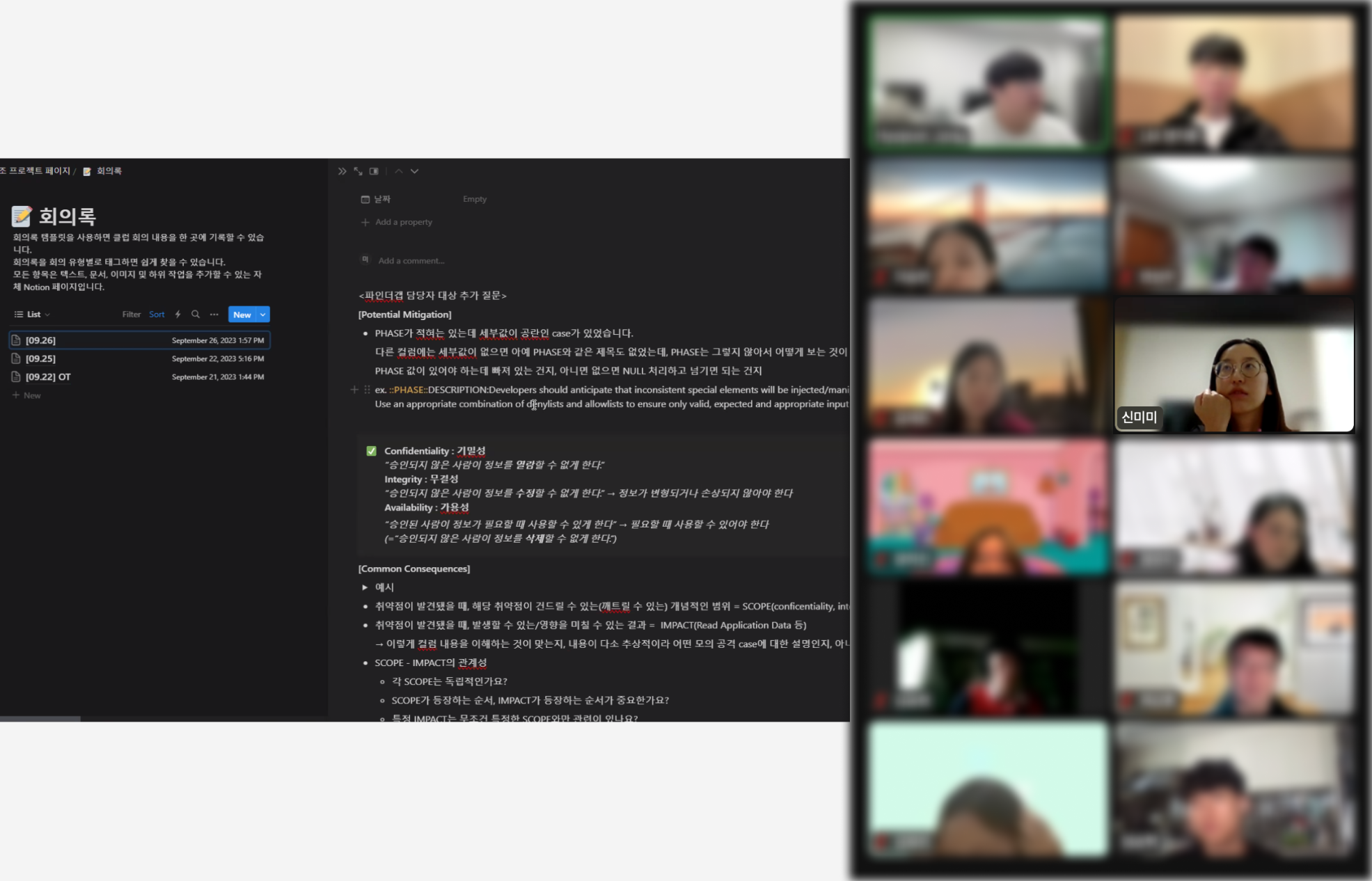 신미미님과 팀원들이 프로젝트 회의를 진행하는 모습