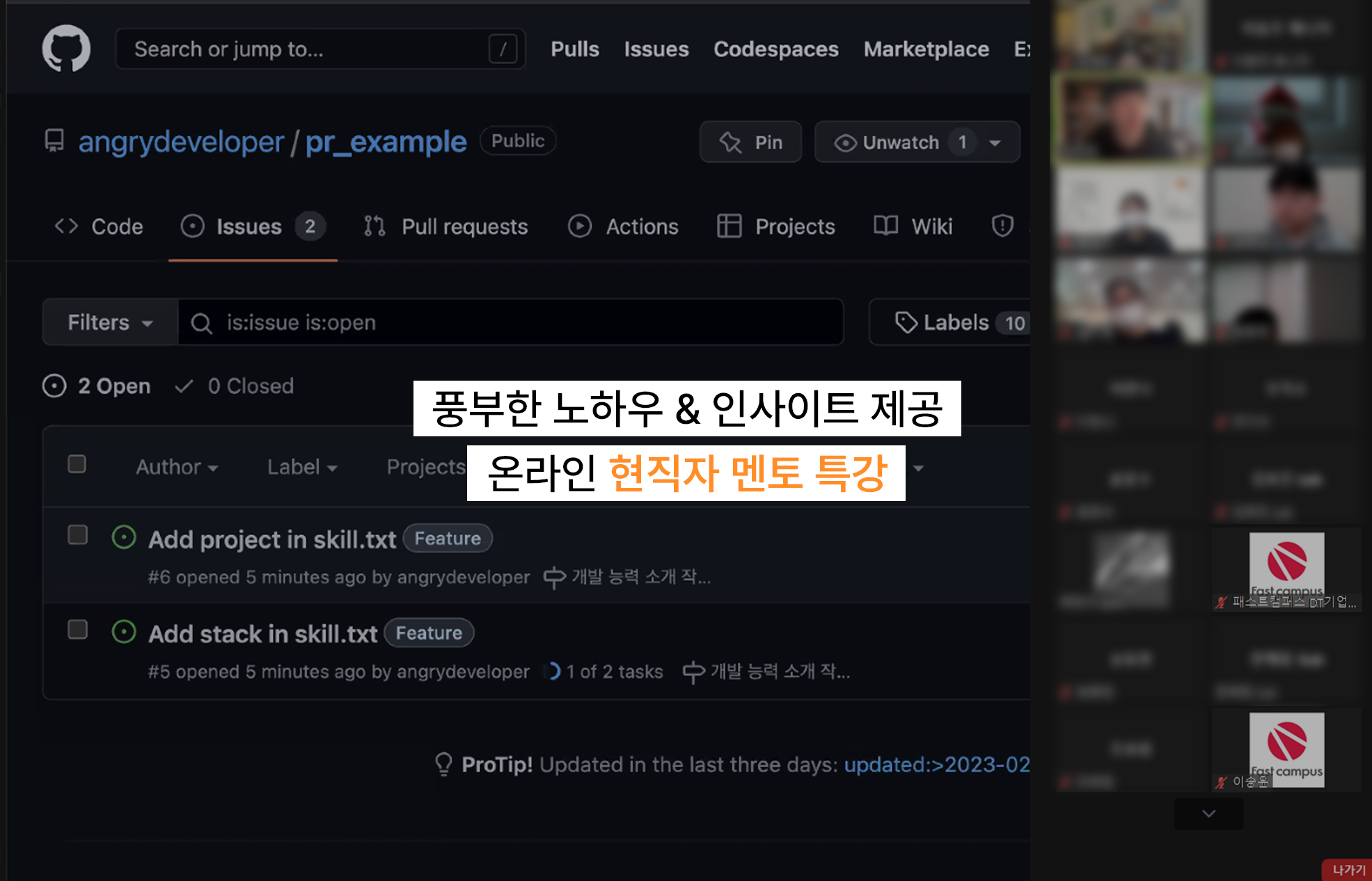 패스트캠퍼스 부트캠프의 오프라인 현직자 특강