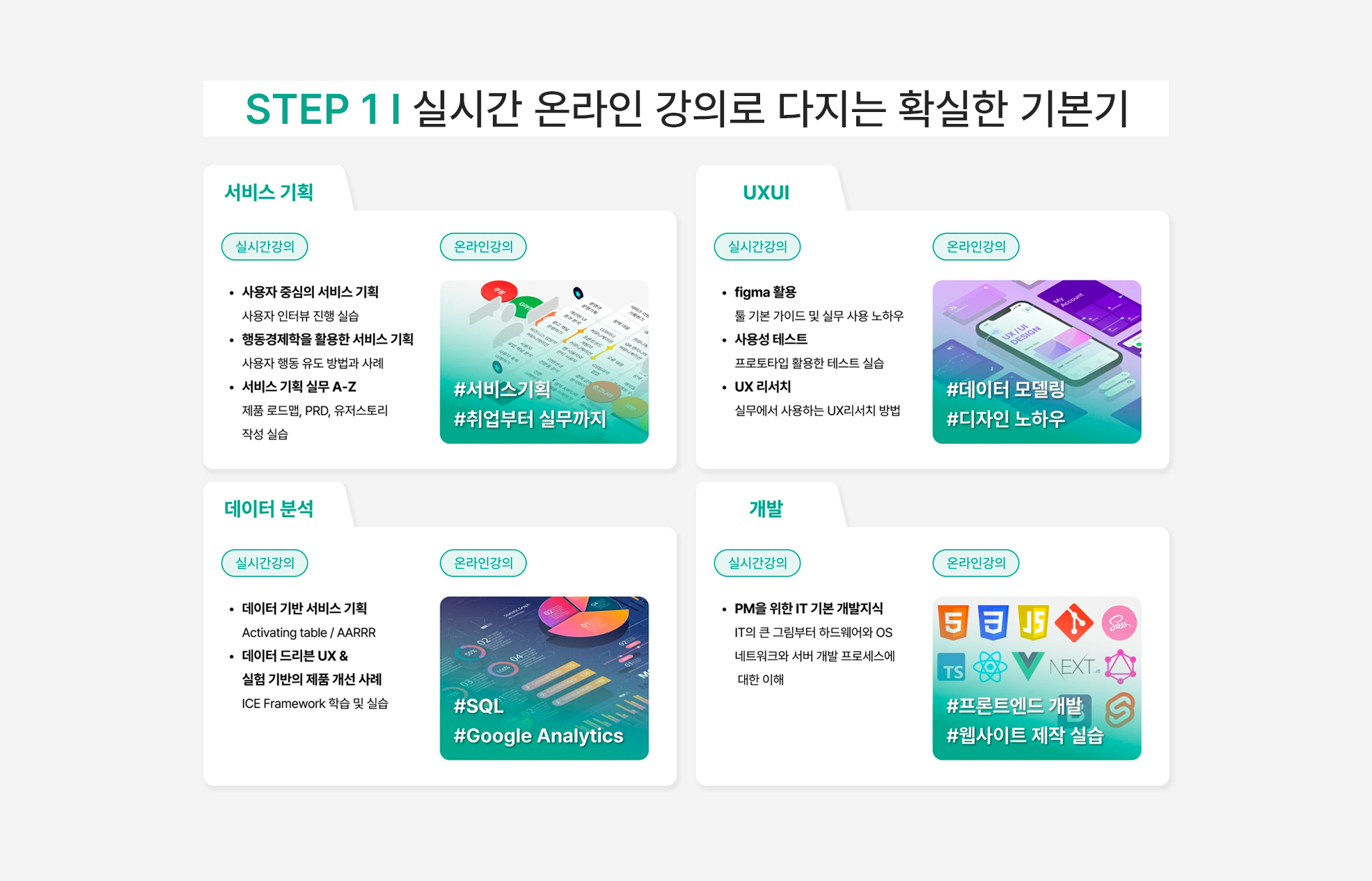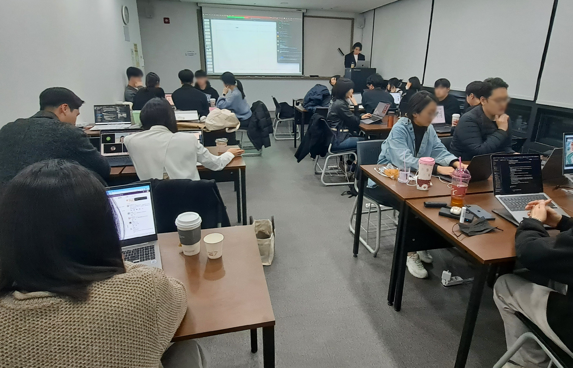 A. 100% 실시간 온라인 강의로 진행되고 있습니다. 강사님들의 실시간 강의가 메인이고, 부족한 부분은 온라인 강의를 통해 보충할 수 있어요.