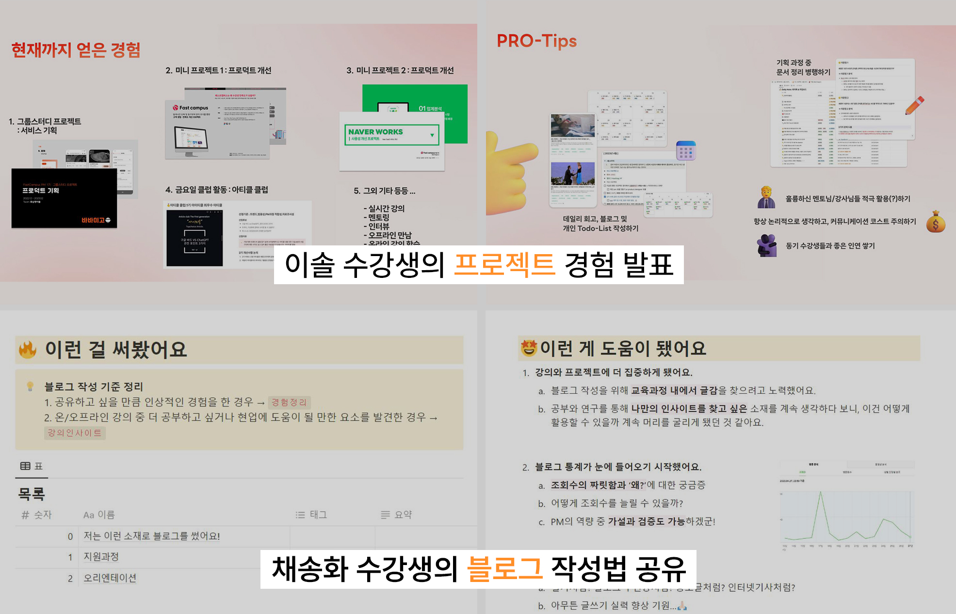 Q. 패스트캠퍼스 PM 부트캠프에는 수강생의 직무 역량을 길러주는 미니 프로젝트 및 기업연계 프로젝트가 있죠. 프로젝트가 수강생님께 어떤 도움이 되었나요?