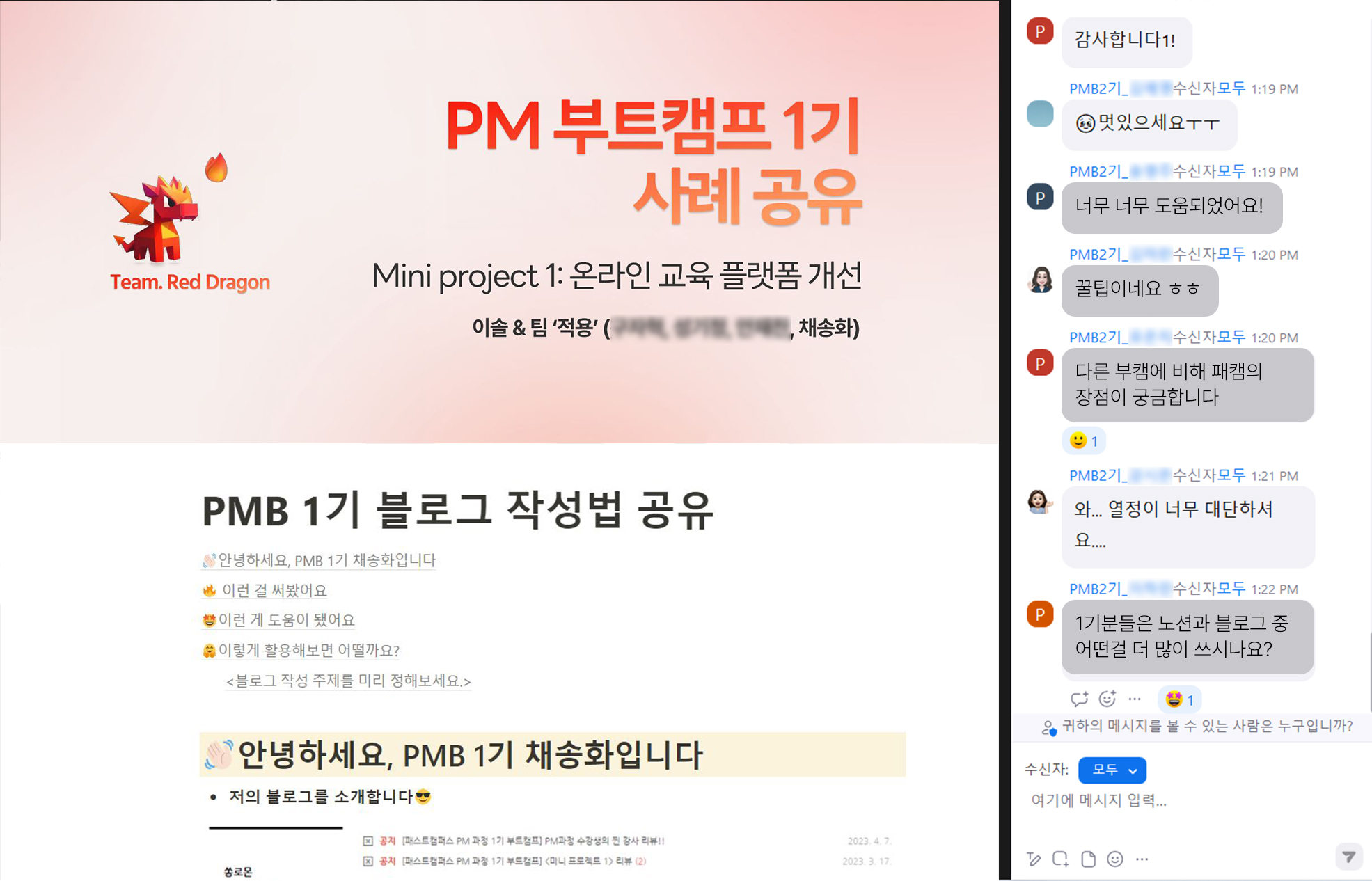 Q. PM부트캠프 1기 수강생들의 분위기가 굉장히 좋았다고 들었어요. 온라인 과정임에도 불구하고 커뮤니케이션이 활발하게 이루어진 이유는 무엇이라고 생각하나요?