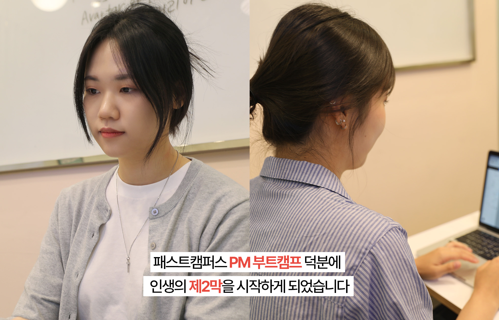 PM부트캠프를 알아보던 이솔·채송화님도 고민이 많았습니다. 잘못하면 몇개월 동안의 노력이 헛수고가 될 수도 있으니까요. 결국 고심 끝에 패스트캠퍼스 PM 부트캠프를 선택하게 됐고, 덕분에 굉장한 변화를 겪게 되었습니다.