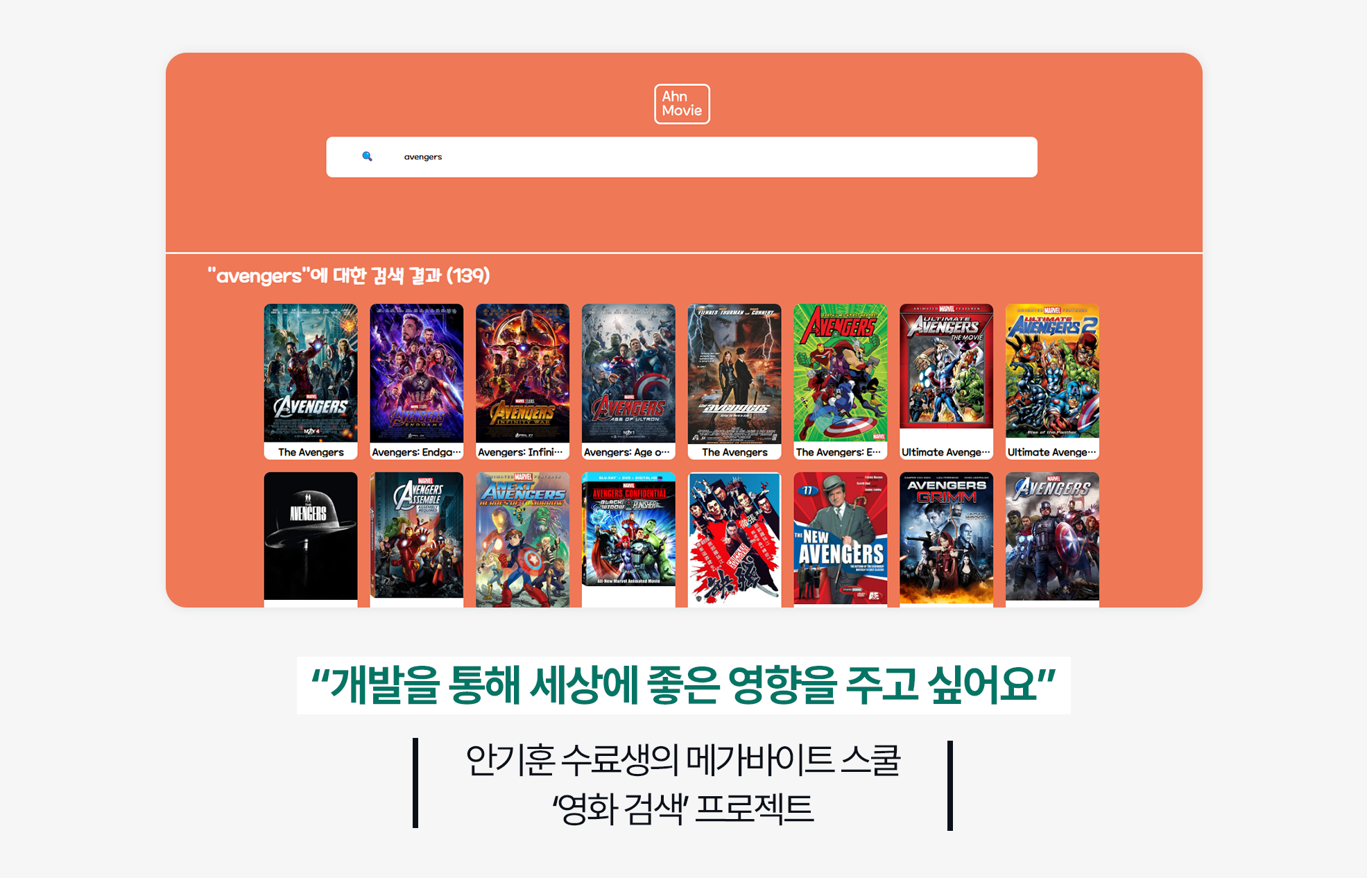 바로 이 영화 검색 프로젝트입니다. 원하는 제목을 입력하면 그에 맞는 영화를 출력해주는 사이트를 만들었어요. 무한 스크롤과 스켈레톤 UI를 활용해서 사용자 편의에 신경을 썼고, 많이 놓치기 쉬운 에러 핸들링에도 공들였어요. 사용자가 영화를 검색했을 때 이에 맞는 영화가 없거나 너무 많은 영화가 나오더라도 받아들이기 편하게 아이콘을 활용해서 개발했죠. 패스트캠퍼스 부트캠프와 함께라면 여러분도 얼마든지 재밌는 프로젝트들을 하면서 취업준비도 동시에 할 수 있을 거예요.