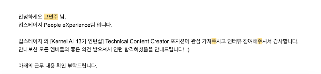 업스테이지에 합류해 보니 제품과 사업이 맞물려 돌아가는 현장을 주 단위로 접할 수 있었고, 특히나 팀원 분들의 열정과 책임감을 보며 크게 배우고 있습니다.
