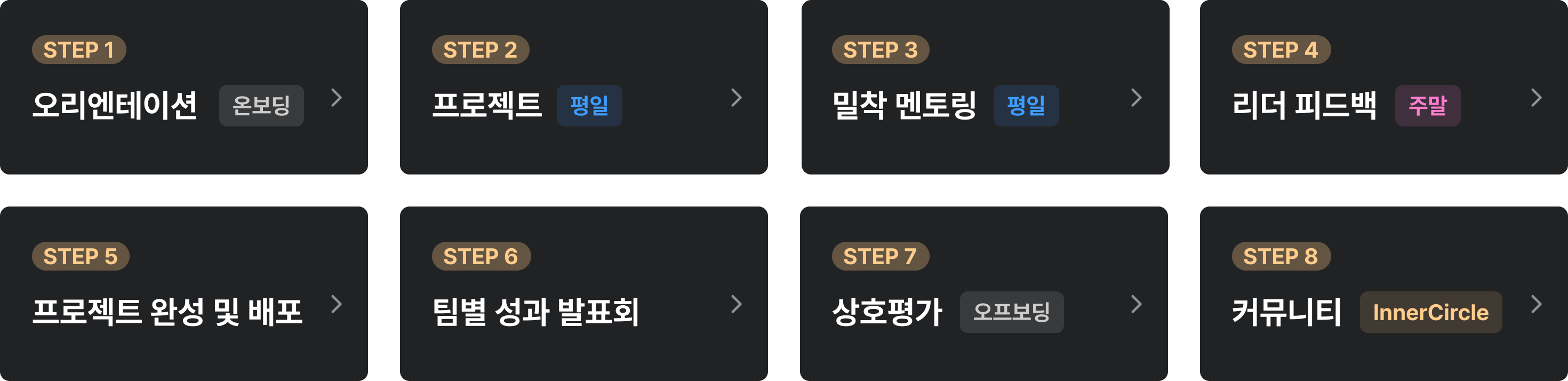 사 밖 동료들과 함께 평일 저녁 사이드 프로젝트를 진행하고 주말에는 Top Tier 리더에게 피드백을 받을 수 있습니다.