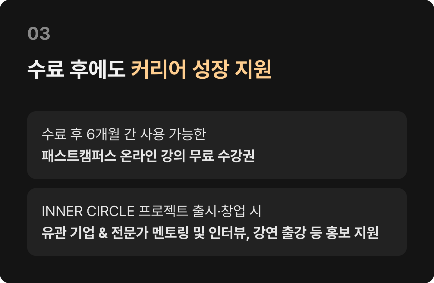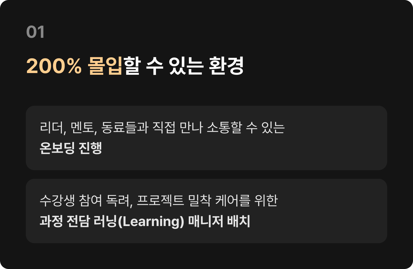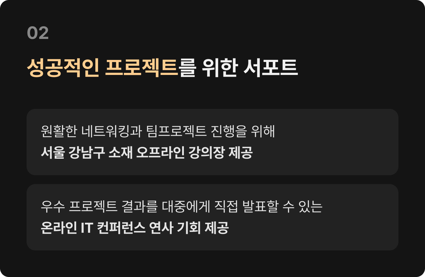 향상된 수강 효과와 다양한 수료 후 지원 시스템까지 경험하세요.