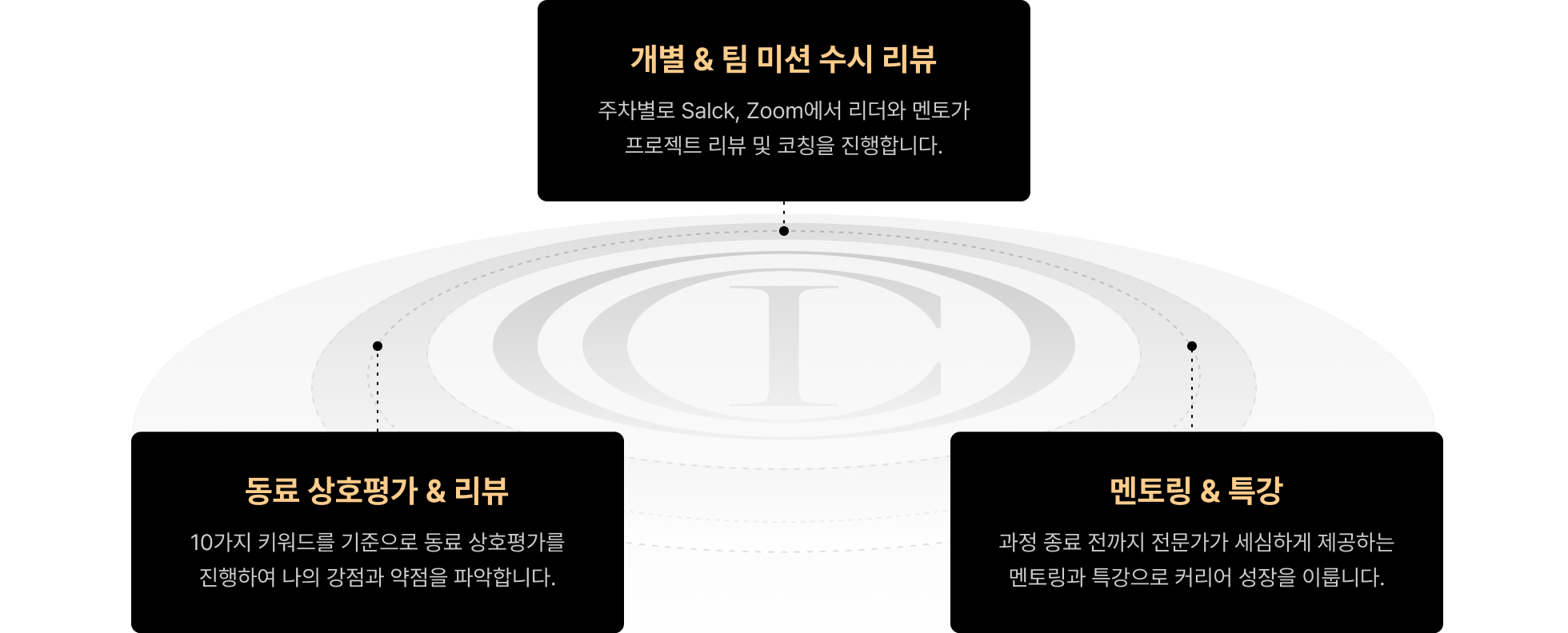 또한 커리어 전문가의 멘토링, 동료간 상호평가를 통해 성장을 위한 방향성을 점검하세요.