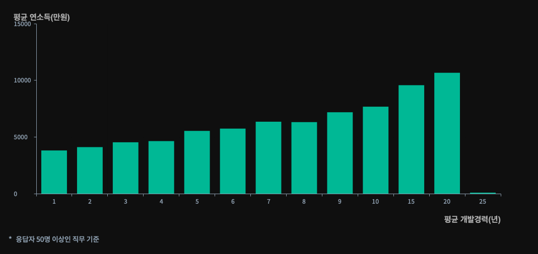 개발자들의 연봉은 1년 차에는 평균 3,736만 원 정도이며 10년 차가 되면 평균 7,814만 원을 받는다고 하는데요. 경력 개발자 기준 통계로 프론트엔드 엔지니어는 평균 4,307만 원, 서버/백엔드 엔지니어는 평균 4,803만 원을 수령해 백엔드 개발자가 프론트엔드 개발자에 비해 평균 11.5% 높은 편입니다.
