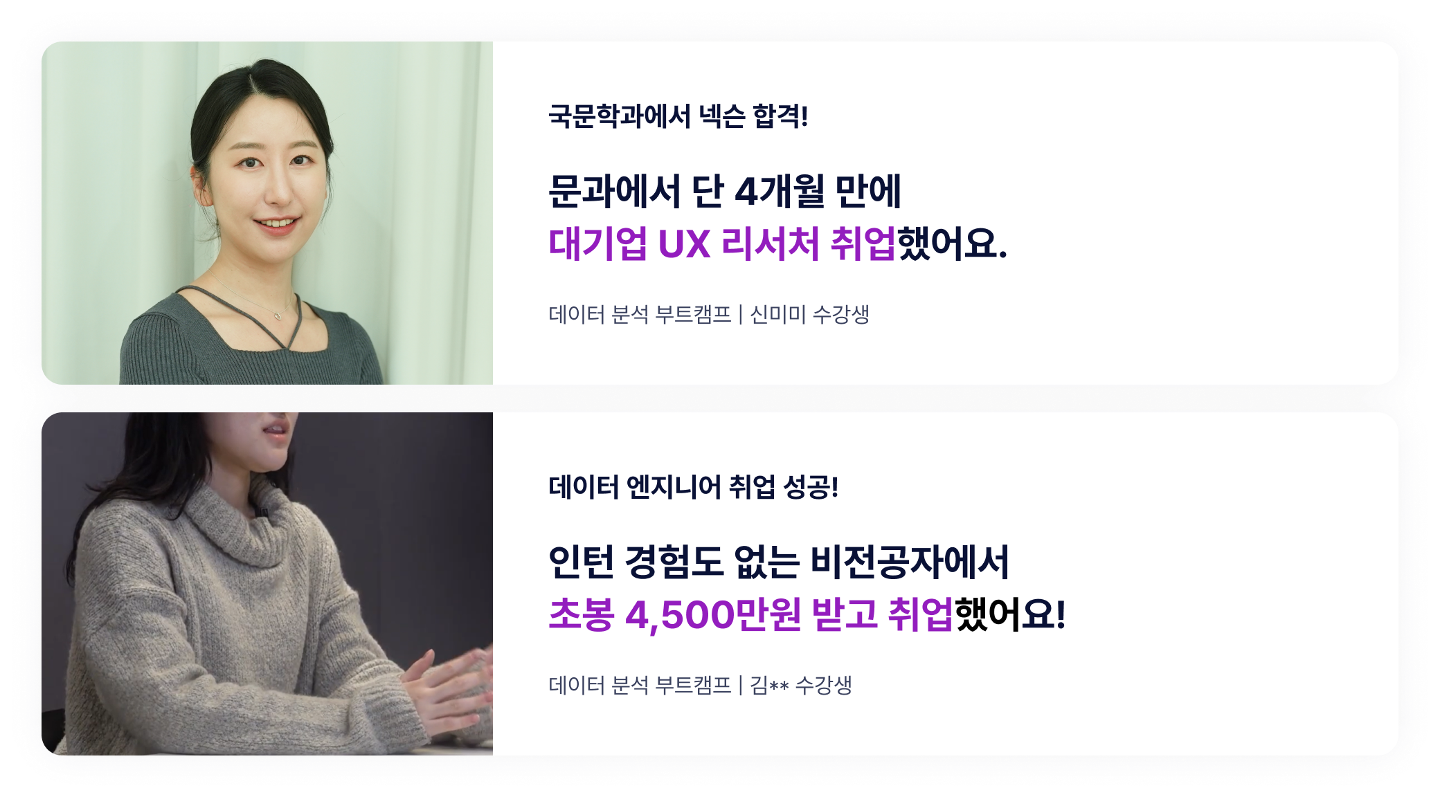 수강생들의 이야기를 확인하세요.